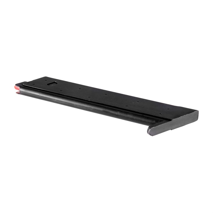 High Standard .22 LR 10-Round replacement magazines are carefully manufactured to the correct specifications for your High Standard pistol. With an improved feed lip design, High Standard .22 LR 10-Round replacement magazines will deliver smooth, reliable performance. All-steel mag tube with welded-on steel base plate Blued finish matches your classic pistol High-visibility red plastic follower instantly verifies mag "loaded" vs "clear" status May require minor fitting to the ejector of your particular pistol to ensure full insertion into magwell A semi-auto pistol is only as reliable as its magazines, so why compromise the performance of your classic High Standard pistol? With a few extra .22 LR 10-Round replacement magazines on hand, you can spend less time reloading or trying to coax old, worn out mags to feed properly, and more time shooting. NOTE: Duramatic 10-round magazine fits original High Standard Duramatic pistol, as well as Plinker and Sears Model 80 - all chambered in .22 LR.