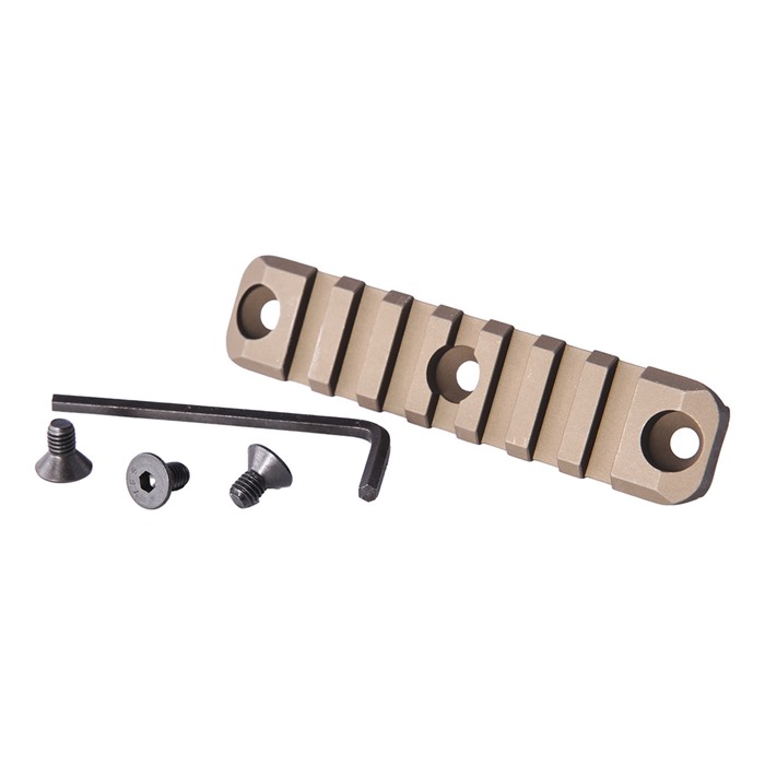 2-Hole Accessory Rail for Geissele HK SMR Designed specifically for use with Geissele HK Super Modular Rails (SMR). This 1913 Picatinny spec rail section allows the attachment of various 1913 Picatinny spec rail-mounted accessories such as lights, vertical grips, etc. Machined from milspec-anodized aluminum. 3 Slots. 3-Hole Accessory Rail for Geissele HK SMR Designed specifically for use with Geissele HK Super Modular Rails (SMR). This 1913 Picatinny spec rail section allows the attachment of various 1913 Picatinny spec rail-mounted accessories such as lights, vertical grips, etc. Machined from milspec-anodized aluminum. 7 Slots.