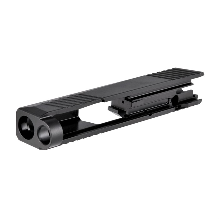 - Skärningen på toppen av sliden bakom utdragningsporten accepterar Holosun 407k, 507k och Shield Sight RMS eller andra rödpunktssikten som passar Holosun 407k/507k monteringsfotavtryck.