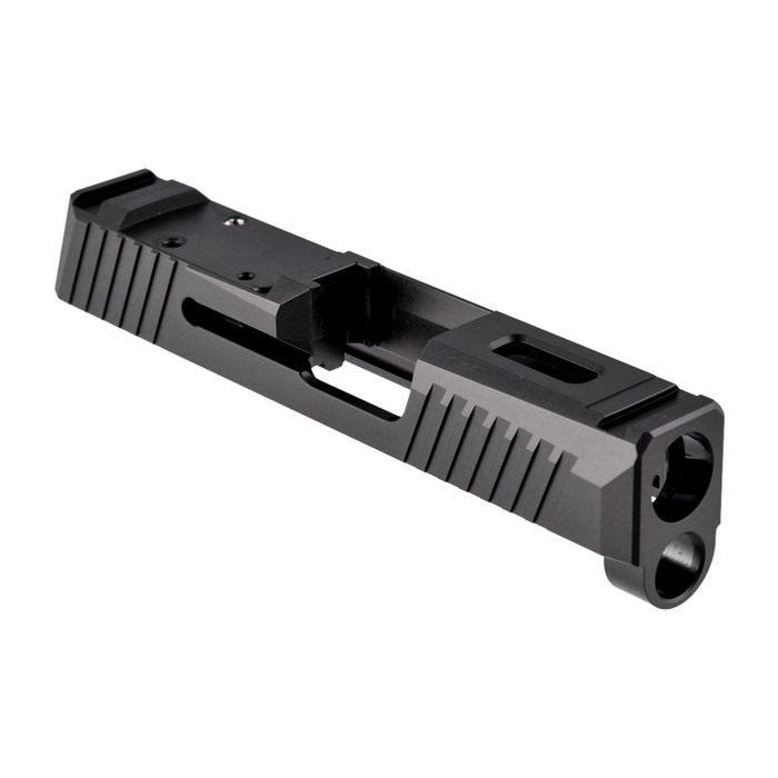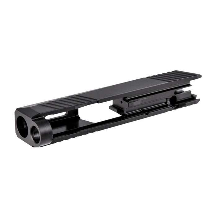 - Cutout på toppen av sliden bakom utdragningsporten accepterar Holosun 407k, 507k och Shield Sight RMS eller andra rödpunktssikten som passar Holosun 407k/507k monteringsfotavtryck.
