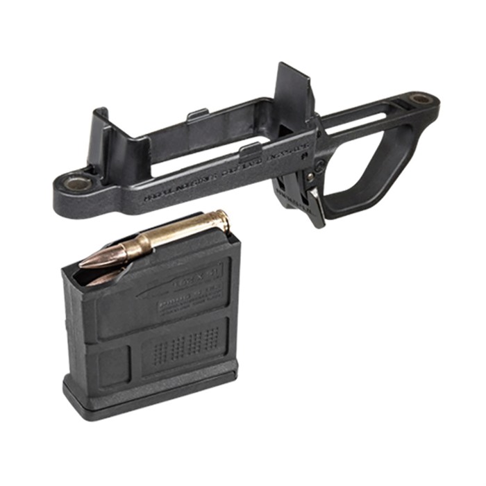 The Magpul Bolt Action Magazine Well is a drop-in solution for our Remington 700 Hunter Stock for those that are wishing to add detachable box magazine capabilities to their rifle. By simply removing your OEM bottom metal and the insert on the Hunter 700 Stock, users can add this reinforced polymer trigger guard and magazine well to their rifle without the need for custom inletting from gunsmiths. Designed to work with AICS pattern, short action magazines. This kit also includes the Magpul PMAG 5 AC.
