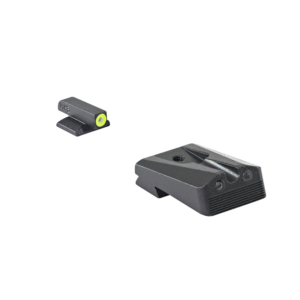 MEPRO Hyper-Bright™ fasta dag- och nattsikten erbjuder den mest pålitliga belysningen för dag eller natt. Mepro Hyper-Bright™ fasta sikten har en extremt ljusstark fluorescerande kontrastfärgad ring i grönt eller orange för snabb måluppfattning under dagen. Den gula ringalternativet är det enda alternativet med fosforescerande färg som laddas med ljus och lyser i svagt ljus under en kort tid i samband med tritium. Som ett resultat framträder både bak- och framsiktets tritiumkällor gröna i svagt ljus och nattetid.