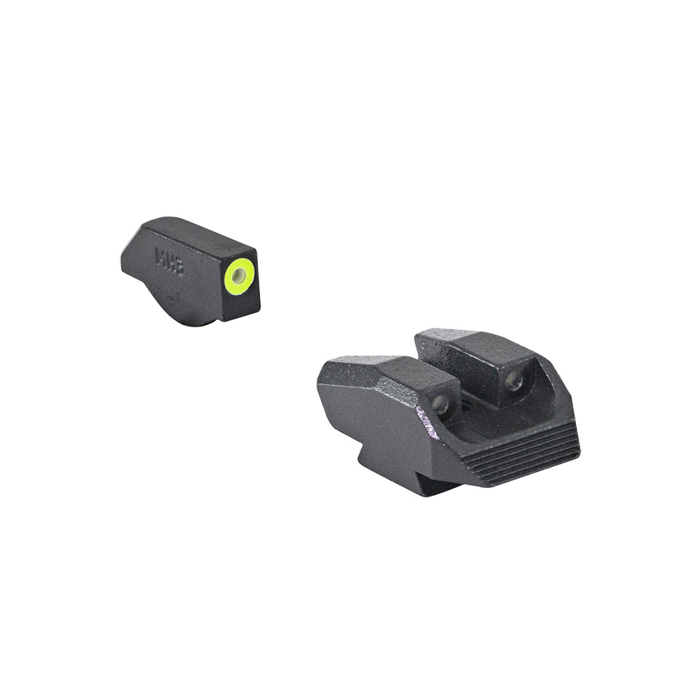 MEPRO Hyper-Bright™ fasta dag- och nattsikten erbjuder den mest pålitliga belysningen för dag eller natt. Mepro Hyper-Bright™ fasta siktar har en extremt ljusstark fluorescerande kontrastfärgad ring i grön eller orange för snabb målfångst under dagen. Det gula ringalternativet är det enda alternativet med fosforescerande färg som laddas med ljus och lyser i svagt ljus under en kort tid i samband med tritium. Som ett resultat ser både bak- och framsiktets tritiumkällor gröna ut i svagt ljus och på natten.