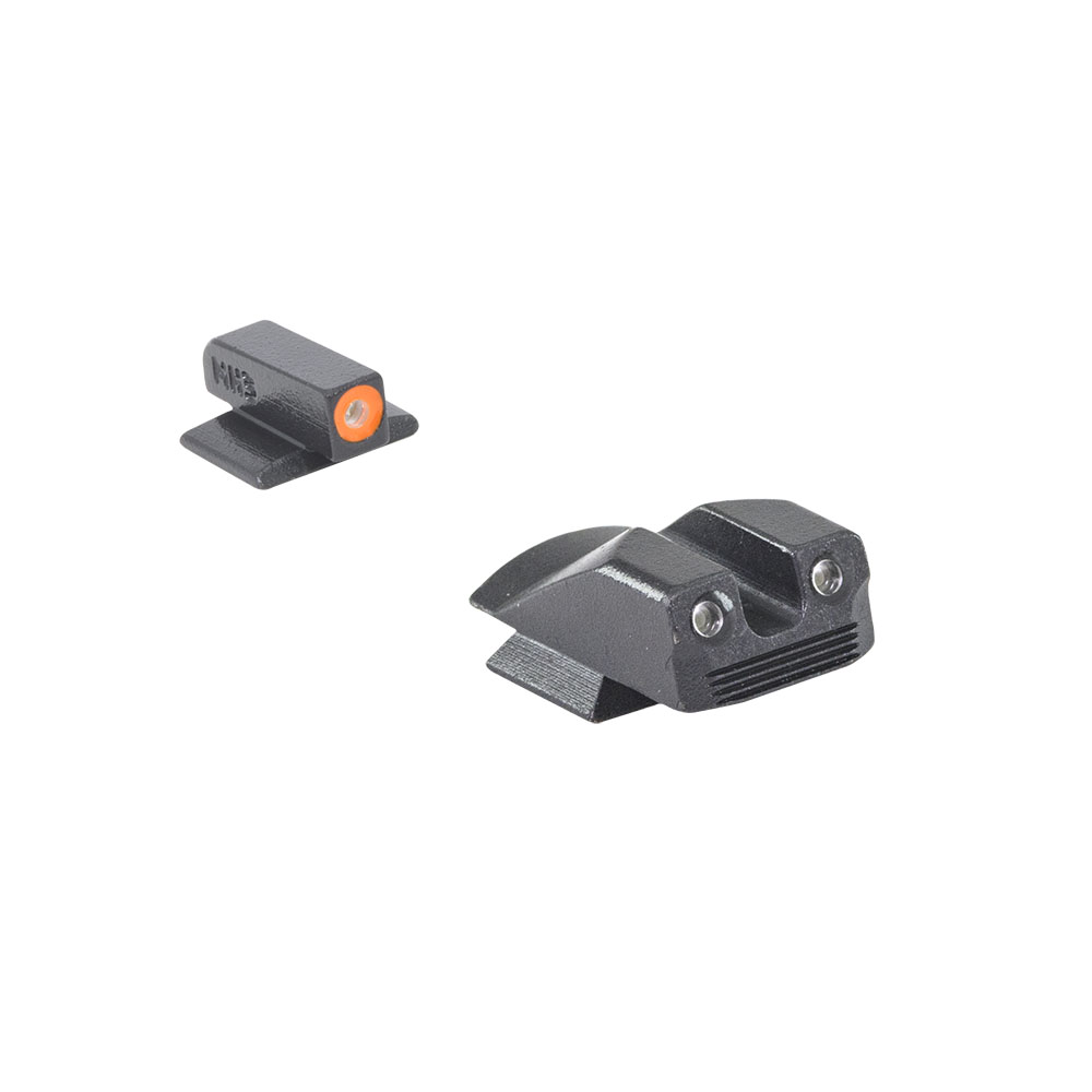 HYPER BRIGHT FIXED PISTOL SET erbjuder en total eklips av konventionell ljusstyrka. Dessa självbelysta, fasta tritium-sikten har en extremt ljus färgad ring i ditt val av grönt, gult eller orange, vilket ger en överlägsen synlighet som en nattsikte eller dag/natt-sikte. Kontrasterande färger på främre och bakre sikten hjälper skyttar att fokusera på det främre siktet snabbare för snabbare målfångst i alla ljusförhållanden.