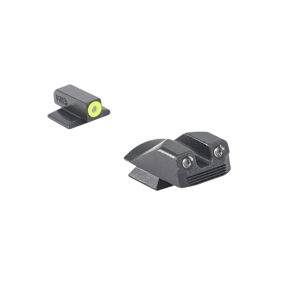 MEPRO Hyper-Bright™ fasta dag- och nattsikten erbjuder den mest pålitliga belysningen för både dag och natt. Med en extremt ljus fluorescerande kontrastfärgad ring i grönt eller orange, möjliggör dessa sikten snabb målinriktning under dagen. Den gula ringalternativet är det enda alternativet med fosforescerande färg som laddas med ljus och lyser i svagt ljus under en kort tid tillsammans med tritium. Som ett resultat framträder både bak- och framtritiumkällor gröna i svagt ljus och nattetid.