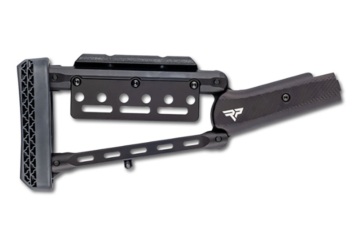 Denna stock är tillverkad av anodiserad 6061 aluminium, vilket ger en utmärkt hållbarhet samtidigt som vikten hålls nere till endast 595 g (21 oz). Det gör den betydligt lättare än den standard trästock som följer med gevären.