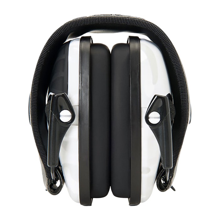 Den nedre delen av de låga hörselkopparna vinklar in skarpt för att säkerställa gott om utrymme när du skjuter med långvapen. Kåporna fälls ihop snyggt i det justerbara huvudbandet för bekväm förvaring.
