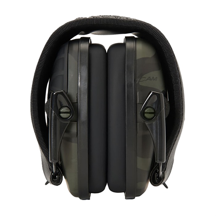 The Howard Leigh Impact Sport Electronic Earmuffs offer compact, lightweight electronic hearing protection allowing you to hear conversations and range commands, while blocking out dangerous noises like gunfire. Internal ultra-fast response electronics amplify ambient sounds to a safe 82 decibels (dB), yet shut down when sounds above 82 dB are detected to let the muff’s passive hearing protection take over. When the earmuffs are in amplification mode, directionally placed stereo microphones even help you hear where the sound is coming from. Built-in AUX input accepts 1/8" (3mm) stereo plug (patch cable included) to connect an MP3 player, radio, or other audio. The Impact Sport Electronic Earmuffs feature an automatically shut-off that activates after 4 hours to preserve battery life. Bottom half of the low-profile ear cups angles in sharply to ensure plenty of clearance when shouldering long guns. Cups fold up neatly into the adjustable head band for convenient storage.