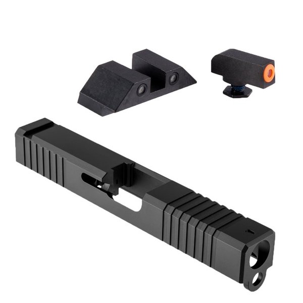 The Brownells Iron Sight Slide for Glock 19® Gen3 enables you to build a custom Glock®-style pistol with a slide that sports distinctive cocking serrations. The front serrations aid in manipulating the slide, especially for quick chamber checks AND for clearing the occasional jam (caused by problem ammo, of course!). Both the front and rear serrations are cut to the same depth as the Glock® factory slide serrations to ensure preservation of structural rigidity. The top edges and the front around the muzzle area are chamfered to reduce the risk of snagging on clothing and to make holstering the pistol easier. You can get your Brownells Iron Sight Slide for Glock® 19 Gen3 with a solid top and wraparound front cocking serrations OR a window cutout on top between the front side serrations. The window aids in heat dissipation to keep the barrel cool during extended fire. If you have an aftermarket barrel with a contrasting finish and / or fluting, spirals, "flames," or some other a unique exterior pattern, the window also shows off a bit of your pistol's bling. Accepts Gen3 Glock® 19 internal parts Factory cuts for iron sights Sturdy machined 17-4 stainless steel Hardened to Rockwell "C" 41-44 for superb wear resistance Durable, non-reflective matte Black Nitride finish Channel liner not included; please order separately (see note below) Window model available Like all Brownells slides, the Iron Sight model for Glock® 19 Gen3 is precision machined from solid 17-4 stainless steel billet to factory specifications inside so it is compatible with any factory or aftermarket Gen3 internal components. Outside, there's a Glock® factory rear sight dovetail and a standard Glock® front sight tenon cut ready for any factory or aftermarket sights you choose. This is the perfect companion "top-half" for a custom pistol built on a Polymer80 80% frame. Brownells Gun Tech™ Note: Channel liner required for these slides. Channel liner is a press fit and requires a tool to install. We recommend #777-100-017.