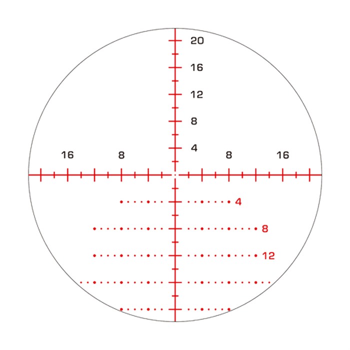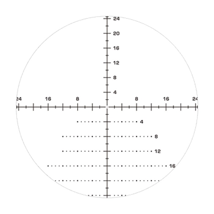 - Illuminated first focal plane reticle: Ger tydlig avläsning i svagt ljus.