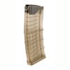Advanced Warfighter Magazines (AWM) fill the gap between the current metal and polymer magazine designs. These lightweight molded polymer magazines stand up to rough handling and extreme conditions of tactical operations, including heat and impact of sustained full-auto fire. Permanently attached, wrap-around feed lips are made from a single piece of precision formed, hardened steel that is PTFE coated for corrosion resistance. They help promote smooth ammo movement and will not deform when the magazine is stored fully loaded over a long period of time. Tested to withstand temperature extremes of -50 degrees F to +180 degrees F and a 5 foot drop fully loaded, onto concrete without impairment of function. Non-reflective exterior has molded-in ridges and enhanced texturing that improve the structural strength and provide a solid grasping surface. Drops free from mil-spec magwells; load to full capacity and insert into weapons with bolt closed. 30-round model fits pouches designed for standard US-GI-spec magazines. Anti-tilt follower and constant-radius body curve helps ensure smooth, snag-free feeding. Hard polymer base plate provides a positive gripping surface for extracting mag from tight-fitting pouches and removes easily for disassembly and cleaning.