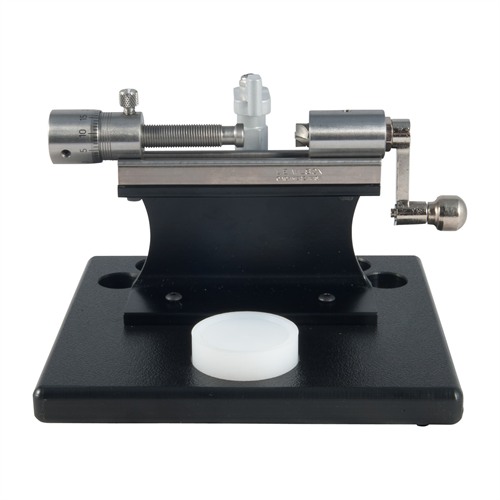 L.E. Wilson Stainless Micrometer Trimmer med stativ - L.E. Wilson Stainless Micro Trimmer utnyttjar den mest exakta trimmern i världen i sin rostfria stålkonstruktion, en exklusiv produkt från Sinclair International. Den kompakta mikrometerenheten är integrerad i stoppbäraren, vilket gör det enkelt för användaren att snabbt justera trimningen i .001" steg. Trimmern använder en hylshållare som håller hylsan vid kroppens avsmalning och kräver inga piloter under trimningsoperationen.