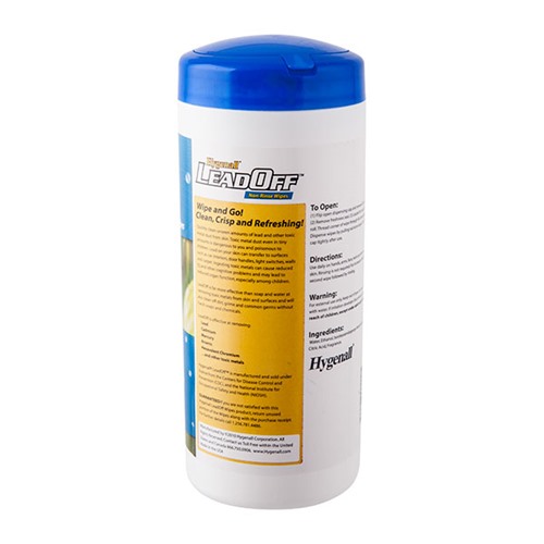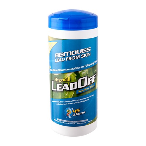 - Använd LEADOFF WIPES efter hantering av skjutvapen eller när du misstänker kontaminering av bly eller tungmetaller.