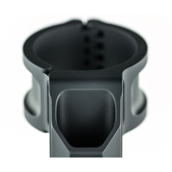 LEAP/08 State of the art 30mm scope mounts. Designed for shooters who want the lightest, stiffest, and easiest to use quick-detach scope mount possible. The LEAP/08 base incorporates different structural elements to maximize overall performance. A large diameter tubular section up front to resist torsion from side impacts, and a very wide I-beam bridge in the rear to resist recoil induced oscillations. Every Leap mount is CNC milled from 7075-T6 Aluminum billet, which has vastly superior mechanical properties to 6061-T6, and is used where ultimate strength and durability outweigh cost considerations. ViseRing™ Designed from the ground up to be lighter, lower-profile, and easier to use than traditional split rings. A low-profile design doesn't get in your way of viewing or manipulating your scope's adjustment turrets. A pair of tapered CNC machined screws lock into the base, bolstering structural rigidity. Wider than competing designs, providing more surface area to safely and securely hold your scope. A high-strength, multi-link hinge eliminates the uncertain and tedious setup required by split rings. LEAP mounts have no protruding levers, bolts, or knobs to rap your knuckles, or get caught on clothing, gear, and surroundings.