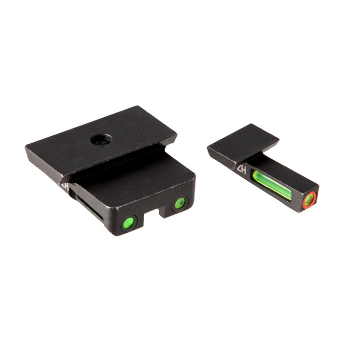 LiteWave H3™ Green + Orange Front Ring Sights from HIVIZ deliver a "triple threat" improvement on traditional night sight technology that ensures you can easily acquire your sights 24 hours a day in ANY light conditions. LitePipe fiber optic rods gather ambient light to produce a bright green, three-dot sight picture that's as easy to acquire in the sunlight of high noon as it is in the long shadows just before sunset. At night, the LiteWave H3's self-illuminating green Tritium inserts - filled with extra-bright "H3" Tritium gas - take over to maintain full visibility of those three dots. As a further enhancement, this version of LiteWave H3™ sights have a bright orange ring surrounding the front dot to help you find the front sight and get the three dots aligned fast - STP, in fact. (That's Sooner Than Possible… OK, maybe we exaggerate just a bit.) Front & rear dots are GREEN; front dot surrounded by ORANGE circle Traditional, intuitive, horizontal 3-dot pattern Exceptional visibility in ANY light conditions Steel sight bodies with durable satin black finish 1911 set fits all Kimber pistols with fixed sights; does not fit Micro Glock models available for standard, large, and G42/43 frame pistols & fit all "Gens" Smith & Wesson M&P fits full-size & compact pistols in all calibers; does not fit CORE, M&P 22 or M&P long slide Springfield XD fits XD, XDS, XDE & XD-M; does not fit XD w/5.25" bbl Sold as front/rear sight sets, HIVIZ LiteWave H3™ Green + Orange Front Ring sights are engineered for a drop-in fit to your pistol's factory slide dovetails or screw holes. Sight bodies are made entirely of steel to ensure excellent protection for the Tritium and fiber optic inserts. Sights are sized to allow proper clearance in standard holsters for your pistol. Put a set of HIVIZ LiteWave H3™ Green + Orange Front Ring sights on your pistol - and enjoy all the benefits of the highly intuitive, easy to acquire sights that get you on target FAST!