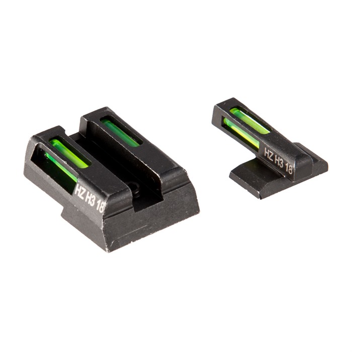 LiteWave H3™ Green Sights from HIVIZ deliver a one-two punch of Tritium and LitePipe fiber optic technology to ensure you can see your pistol's sights 24 hours a day in ANY light conditions. The LitePipe fiber optic rods gather ambient light to produce bright green aiming dots that are as easy to acquire in the sunlight of high noon as in the gathering shadows before sunset. At night, the LiteWave H3™ sights' green self-illuminating Tritium inserts - filled with extra-bright "H3" Tritium gas - take over to maintain full visibility of those three dots. Day or night, a white outline around the front dot helps the shooter distinguish it from the rear dots. Exceptional visibility in ANY light conditions Traditional, intuitive horizontal 3-dot pattern All dots are GREEN - other colors available separately White outline differentiates front dot Steel sight bodies with durable satin black finish Fits factory dovetails Factory height - will not interfere with standard holsters 1911 set fits all Kimber pistols with fixed sights; does not fit Micro Glock models available for standard, large, and G42/43 frame pistols & fit all "Gens" Smith & Wesson M&P fits full-size & compact pistols in all calibers; does not fit CORE, M&P 22 or M&P long slide Springfield XD fits XD, XDS, XDE & XD-M; does not fit XD w/5.25" bbl HIVIZ LiteWave H3™ Green sights are sold as front/rear sight sets and are engineered for a drop-in fit to your pistol's factory slide dovetails (screw holes, in the case of Glocks). Sight bodies are made entirely of steel to ensure thorough protection of the Tritium and fiber optic inserts. Sights are sized for proper clearance in standard holsters for your pistol. Isn't it about time to ride the Wave? Put a set of HIVIZ LiteWave H3™ Green Sights on your pistol, and enjoy the peace of mind you get from knowing whatever the situation you won't lose time trying to find your sights!