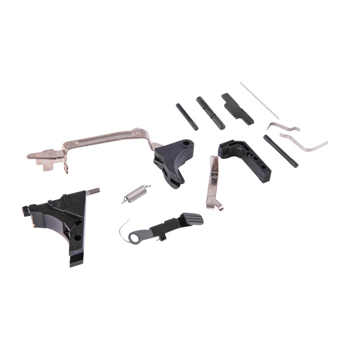 The Brownells frame parts kit contains all the parts to assemble Glock, Polymer 80, and SCT frames. All the parts in our frame parts kit are aftermarket and are made to the correct dimensions for proper fit, finish. Includes all the necessary parts to complete a full size and compact Glock style frame.