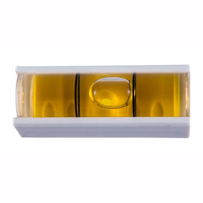 - Applicera en liten mängd lim på den platta monteringsflänsen av bubblenivån.