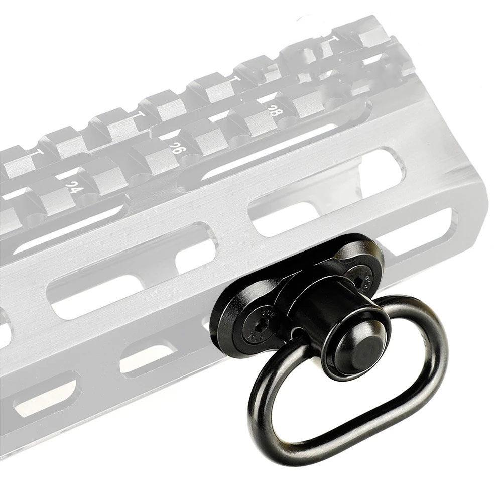 M-LOK QD Sling Mount Set är kompatibel med universella standard QD-swivlar, vilket ger dig flexibiliteten att använda ditt föredragna sling-system. Oavsett om du har en enpunkts-, tvåpunkts- eller trepunkts-sling, kan denna adapter tillgodose dina behov och möjliggöra snabb och säker fästning.