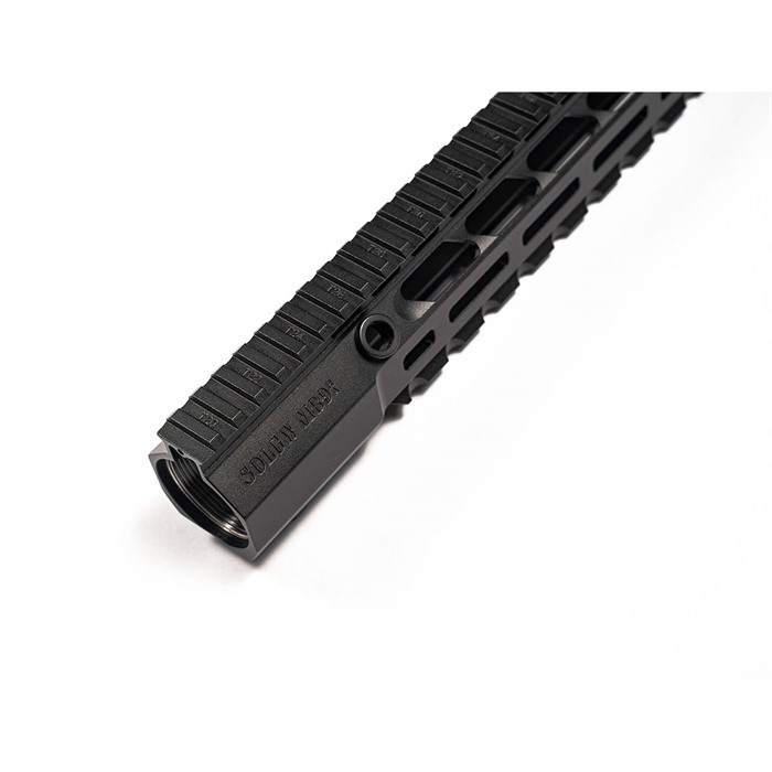 The revolutionary, patent-pending Drivelock design in collaboration with Icon Defense, uses three independent wedges that interface with the angular grooves in our proprietary barrel nut. This system clamps the rail onto the steel barrel nut with extreme force and precision, while also driving the handguard rearward towards the upper receiver. The slightly larger ID of that extrusion gives users more real estate around the gas block, even more rigidity than the M76, and takes longer to heat. Lengths Available: 8″- 13.1oz 9.5″ – 14.4oz 10.5″ -14.6oz 11.5″ – 15.6oz 13″ – 16.6oz 13.75″ – 17.2oz 15″ – 18.1oz 16.75″ – 19.4oz ID: 1.4″ Finish: Mil-Spec MIL-A-8625F, Type III, Class 2, Hard Anodized Coating, Non-Reflective, NiAc Seal (Anodized to match SOLGW receivers) T-Marks: Engraved T-Marks What’s included: Rail Barrel Nut Barrel Nut Wrench Lock-Up Components