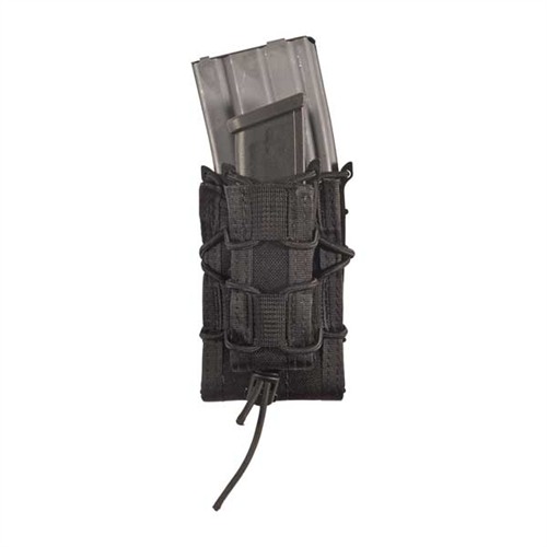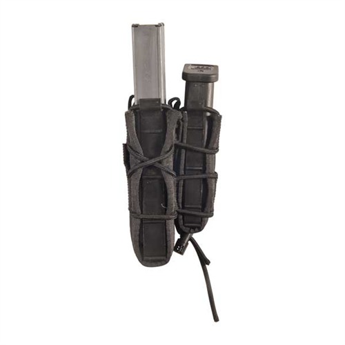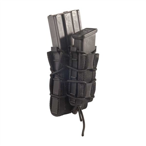 High Speed Gear’s Double Decker TACO® magazine carrier combines their modular rifle mag pouch and a modular pistol mag pouch into one secure unit. This unique pouch can securely hold a variety of combinations of mags and other accessories. The original TACO® forms the base and USGI, HK, PMAG, ARC, FAL, AK 30/ 40, LR20 and M14 magazines are all held securely and deployed easily and silently on demand. The HSGI TACO® even works for certain radios, flash bangs and smoke grenades providing versatility while taking up only 3” horizontal inches on your platform. On top, they attached a Pistol TACO®. This versatile pouch will hold almost any pistol magazine. Single stack, double stack; it makes no difference. 1911, HK 45, M9/Beretta 92, Glock, XD mags are all held securely and deployed easily and silently on demand. The HSGI Pistol Taco® can also hold a variety of multi-tools and flashlights. Both Taco pouches are made of Cordura, an injection molded polymer and shock-cord. The pouches both maintain a positive, adjustable grip of the mag and do not require any other securing systems unless desired. Webbing tabs are sewn in on the top for use of "over the top" bungee retainers (not included). Additional loop Velcro® is sewn in the inside of the rifle pouch if the user wishes to utilize adhesive backed hook Velcro on their magazine body for added security.