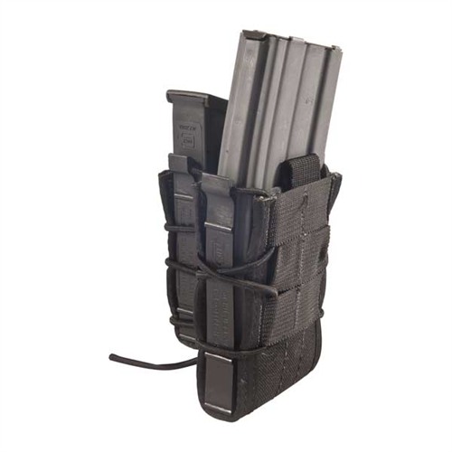 High Speed Gear’s Double Decker TACO® magasinbärare kombinerar deras modulära gevärsmagasinpouch och en modulär pistolmagasinpouch i en säker enhet. Denna unika pouch kan säkert hålla en mängd olika kombinationer av magasin och andra tillbehör.