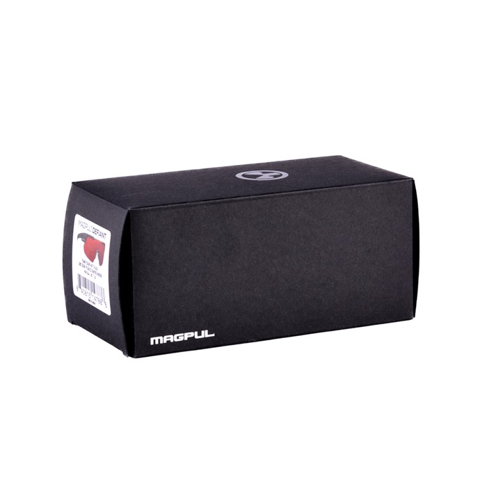 DEFIANT EYEWEAR Magpul has been developing innovative products for firearms enthusiasts and the professional users for more than 20 years. Their eyewear merges that same innovation with style and advanced features. Their latest model, the Defiant, is designed to deliver functional, adaptable, ballistic eye protection along with maximum coverage and visibility. When your environment or location changes, the Defiant has a unique lens replacement capability so you can transition to the coverage and color you need. The Defiant excels at providing extreme impact protection without sacrificing comfort. It gives you Z87+ ballistic protection and has been tested to MIL-PRF-32432 ballistic standards. Its lens shape accommodates both large and medium faces without sacrificing peripheral vision or protection coverage. The unique lens and frame interface enhances the lens’ ability to flex when worn, optimizing user fit, and its 7-base curvature is purpose-built for optimal clarity and light transmission. Critical touch points such as the rubber overmolded temple pads and the soft rubber nose pads keep the Defiant comfortable and in place, even when you’re covered in perspiration or on the move. The Defiant’s temples are specifically designed to eliminate pressure points while wearing over-the-ear hearing protection and integrate seamlessly with helmets or headwear. With its easy-to-use quick-release lever system, switching between the three unique Defiant Replacement Lenses is quick and simple, meaning you have different polarization, color, and light transmittance options available at any time. Comes with a black large DAKA Can storage case and a Magpul Eyewear Bag made with lens-safe cleaning material. MAXIMUM PROTECTION AND COVERAGE Ballistic rated Z87+ and MIL-PRF-32432 lenses and TR90 frames meet both high velocity impact protection and safety ratings Low-profile temple design maintains comfort and function while wearing hats or over the ear hearing protection SUPERIOR LENS QUALITY Oleophobic treatment of lenses provides liquid and other chemical protection and added scratch resistance Anti-reflective coating on inside of lenses minimizes distracting reflections REMOVABLE LENSES Lenses are quickly removable for easy maintenance and changing conditions Designed for Medium / Large faces SPECIFICATIONS: Lens Rating: ANSI Z87+ and MIL-PRF-32432 Materials: TR90 frame