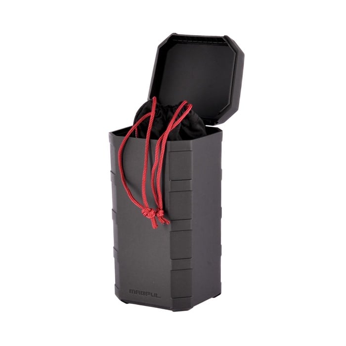 Produkten levereras med ett svart stort DAKA Can förvaringsfodral och en Magpul Eyewear-väska tillverkad av linsvänligt rengöringsmaterial.