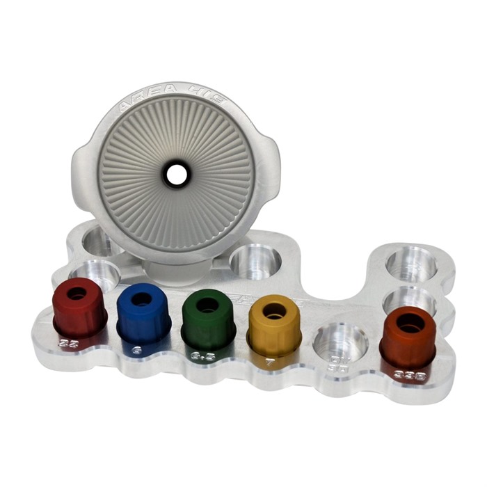 AREA 419:s billet aluminium pulvertratt använder ett system av utbytbara, kaliber specifika huvuden för att göra den till den ultimata tratten för omladdare som finns tillgänglig idag. Universella plasttrattar har flera problem som löses med detta system: