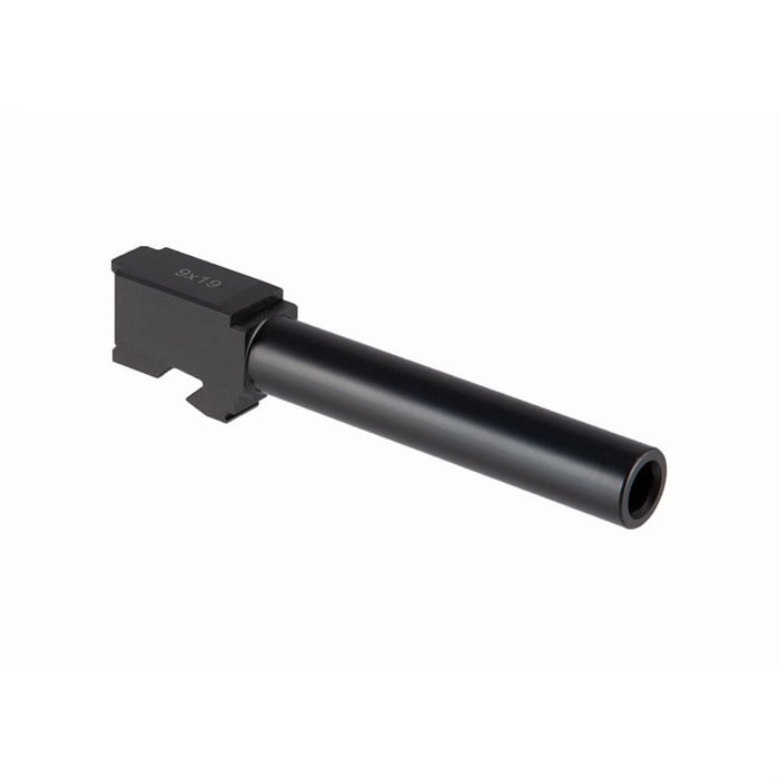 Den matchade pipan för Glock 17 passar Gen1 till Gen4 G17-pistoler och finns tillgänglig med antingen en vanlig mynning eller gängad för installation av en kompensator eller ljuddämpare. Båda har en 11-graders måltavla krona, och varje är lasergraverad med kalibreringen och Glock-modellen den passar.