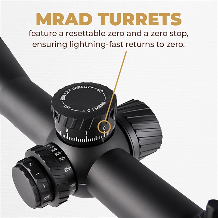 - Retikel och turrets i MRAD för snabba och enkla justeringar