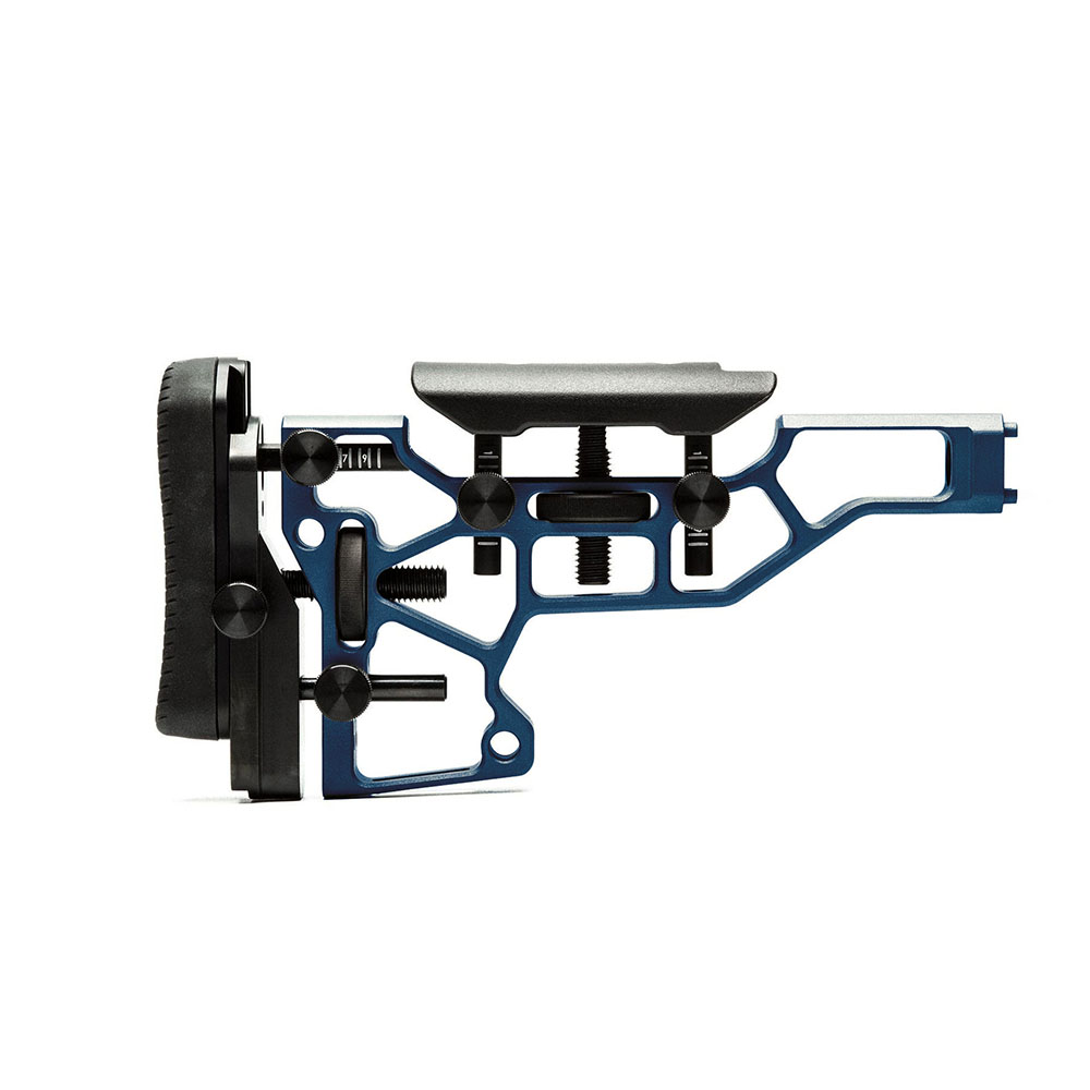 - Justera kindstödet och kolvplattan horisontellt, vertikalt och lutande för att passa din skjutställning.