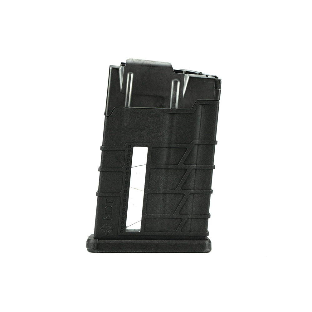 The MDT Poly/Metal AICS pattern magazine is constructed with a polymer body fitted to a metal feedlip assembly. This arrangement combines the warmth and light-weight feel of a polymer magazine with the reliability and adjustability of a metal magazine. In addition, the polymer body contains a clear polymer window on each side, allowing the user to confirm whether or not the magazine is fully loaded. Also works with 6 / 6.5 Creedmoor, 6 / 6.5x47 Lapua, 243 Win and 7mm-08. Maximum COL is 2.87". Black.