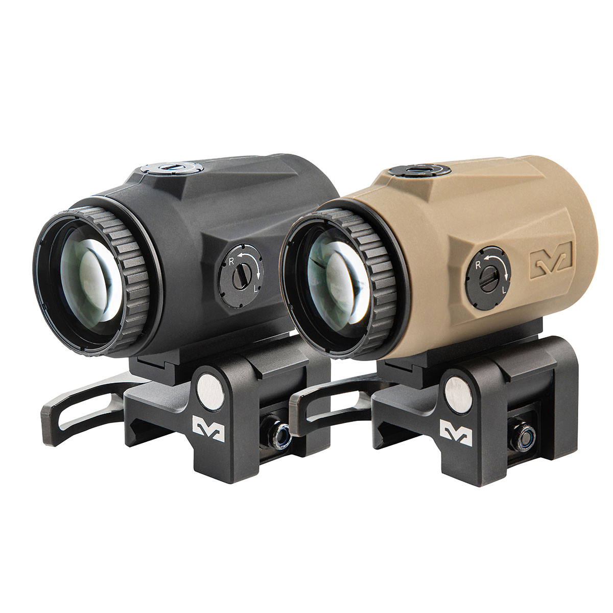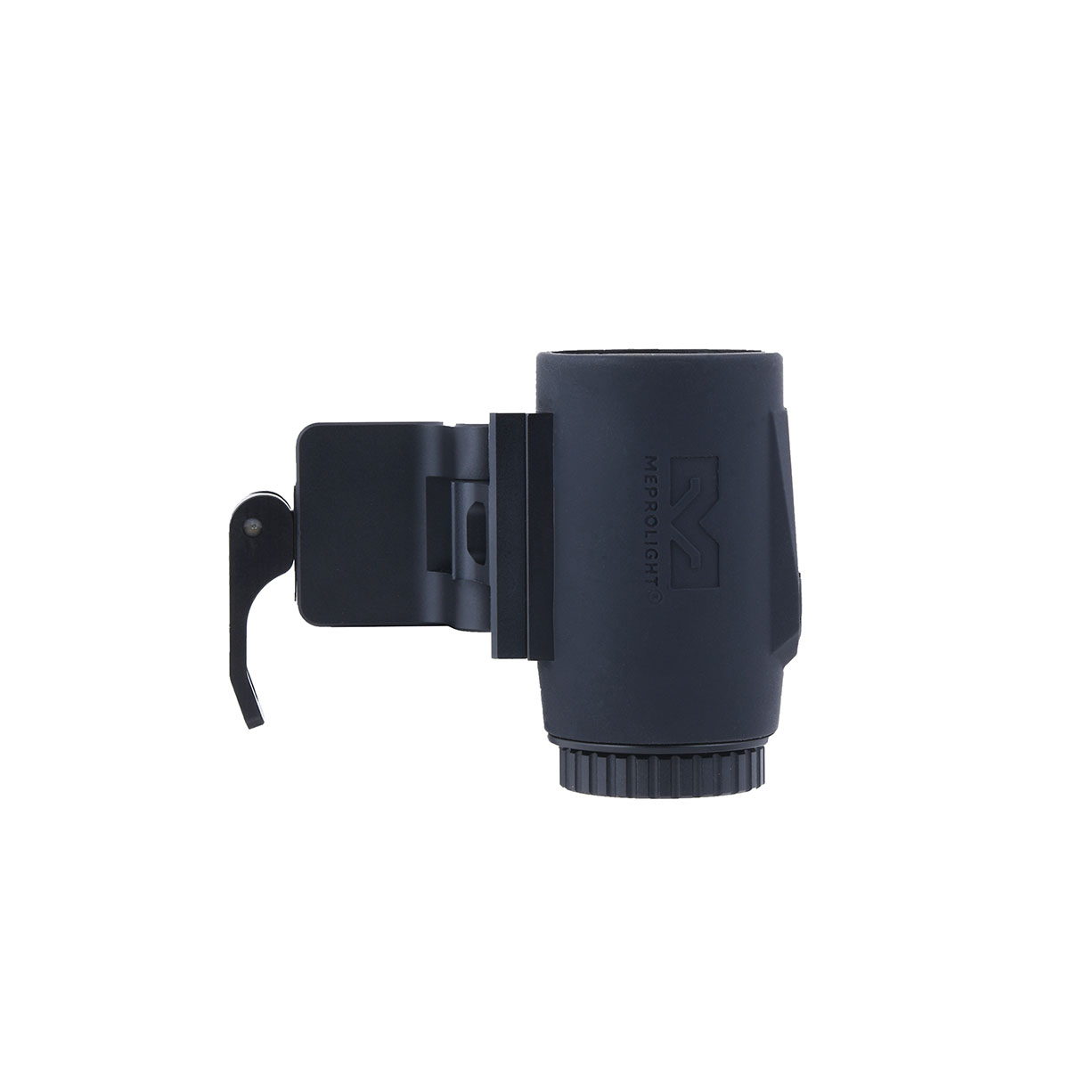 The Mepro MMX3 and micro magnifiers attach to any MIL-STD-1913 rail directly behind your optic. When not in use the Mepro MMX3 can be “flipped” out of