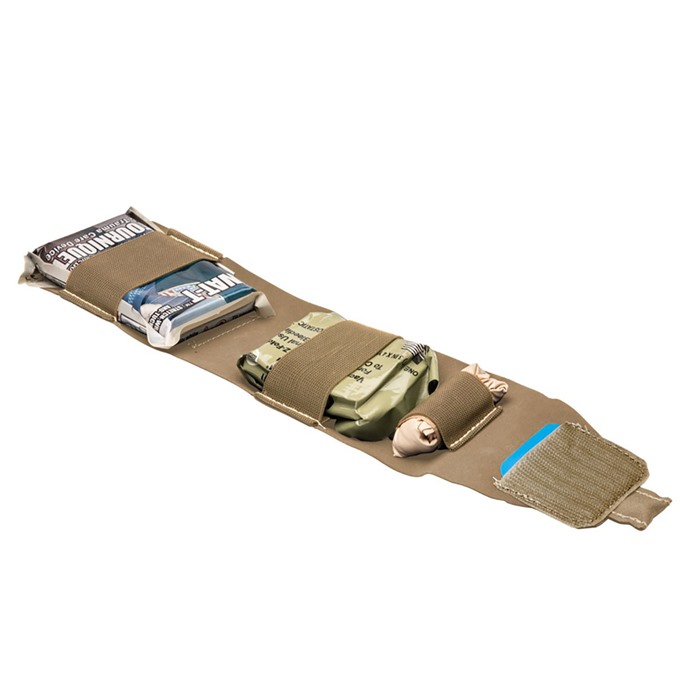 - ADVANCED INCLUDES: Trauma Gloves (Rolled 1x Pair), QuikClot Combat Gauze (1x - grön), och en Pressure Device (1x)