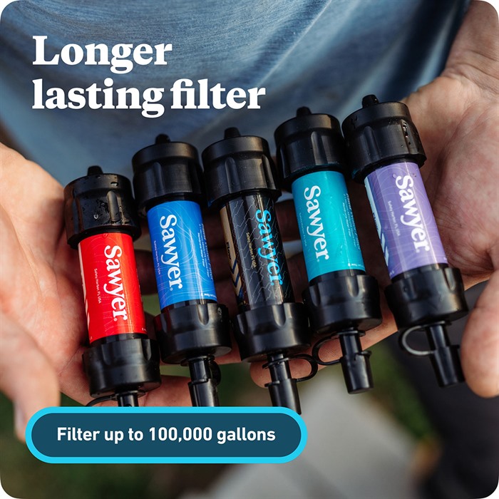 MINI WATER FILTRATION SYSTEM från SAWYER är den mest populära vattenfiltern som nu är både mindre och lättare. Den väger endast 2 ounces och kan filtrera upp till 100,000 gallons!