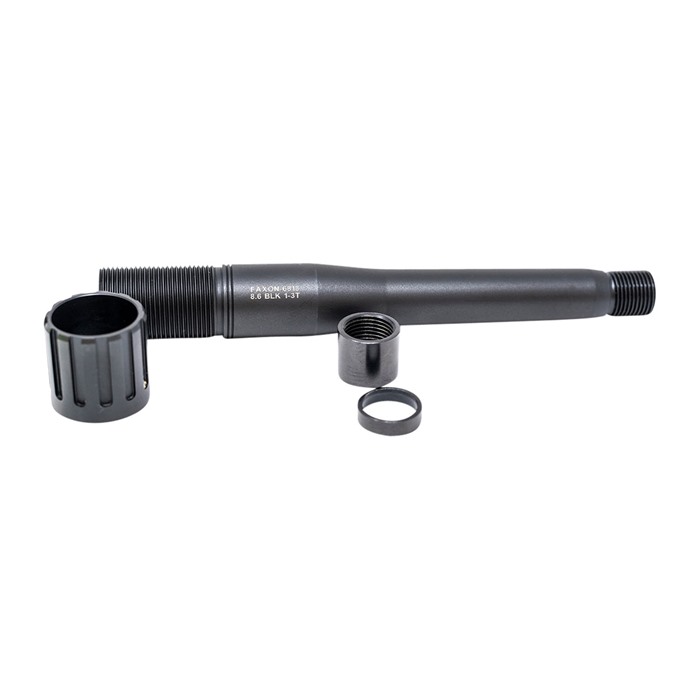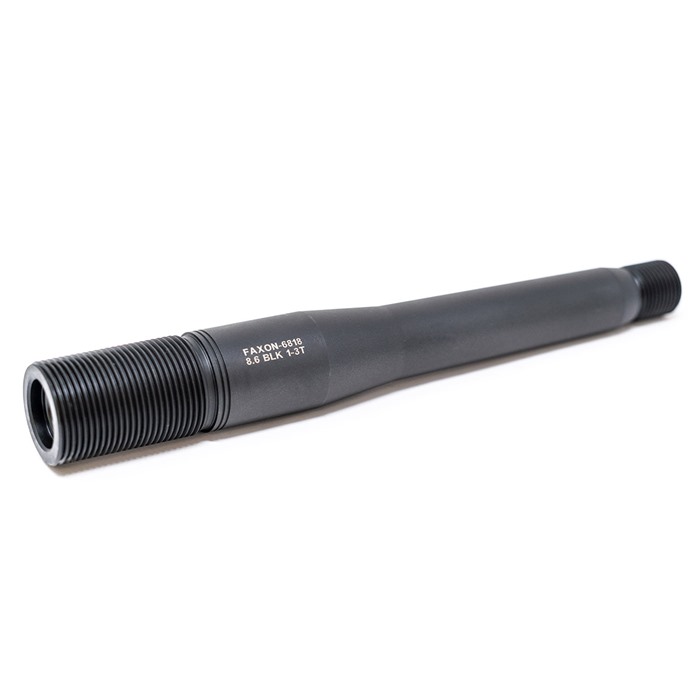 Faxon Firearms is proud to partner with Q on the development of barrels for their revolutionary new round, 8.6 Blackout (8.6 BLK). With barrels employing an impressive 1:3 twist rate, 8.6 BLK channels rotational energy to increase energy on-target. As with all Faxon Barrels, these 8.6 BLK barrels are machined from raw bar stock in their greater Cincinnati Facility. Faxon 8.6 BLK barrels are fully stress-relieved, air-gauge tested, Magnetic Particle Inspected, and 11-degree target crowned to ensure superior accuracy. Constructed of 416-R Stainless Steel, each barrel goes through a battery of tests at each operation until finished in Nitride and final inspected. All Faxon Barrels are individually checked for headspace by precision custom hardened gauges and are backed by the Faxon Lifetime Guarantee. Faxon RemAge© Style Barrels for 8.6 BLK ship with a Thread Protector, Taper Adapter, and Faxon RemAge© Style Barrel Nut. Faxon's barrel nut uses a standard AR Armorer's Castlenut Wrench profile. Consumer Note: At the time of release, 8.6 BLK is not SAAMI certified. Please use appropriate caution while firing and when using reloaded ammunition.