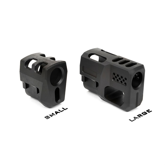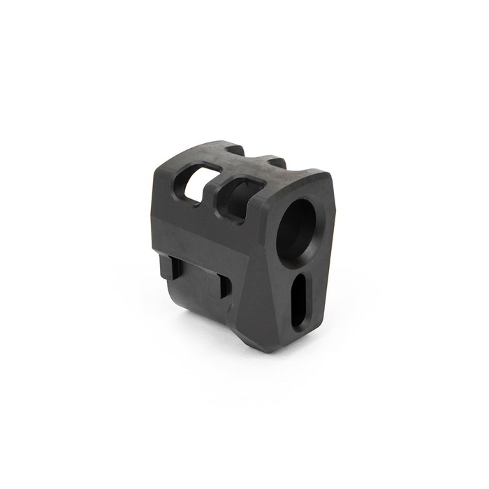 Endast en (x1) tumskruv krävs för att installera eller ta bort SMC-kompenseraren. Tillverkad av S45C-stål med Quench Polish Quench (QPQ) processfinish. Denna kompenserare hjälper snabbt och enkelt till att mildra kännbar rekyl och minska mynthöjning.