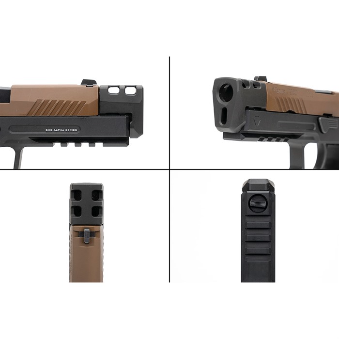 Denna kompenserare är utformad för att vara kompatibel endast med Standardlängdens Strike Modular Chassis (SMC) - ALPHA setup, som använder en SIG SAUER P320 3.9” slide/barrel. Kompenseraren för Strike Modular Chassis (SMC) har en sömlös design och monteras direkt på chassit i två längdvarianter, liten och stor.