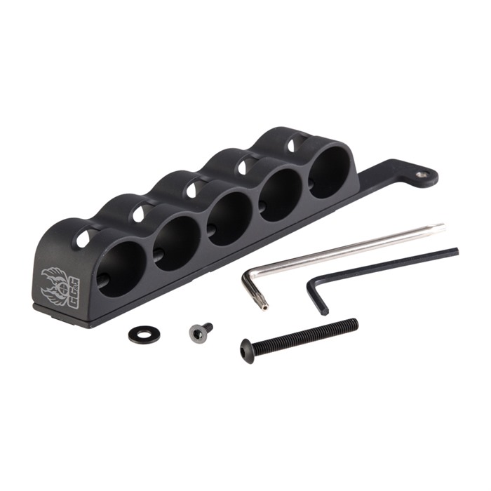 GG&G Side-Saddle Shell Holder för Mossberg Shockwave ger dig snabb åtkomst till extra ammunition under snabba taktiska situationer. Hållaren positionerar patronerna i en vinkel på 15° för att matcha vinkeln på din hand, vilket gör att påfyllning av magasinet eller kammaren går ännu snabbare. Med Side-Saddle Shell Holder kan patronerna också placeras med basen upp eller ner för att passa din påfyllningsstil.
