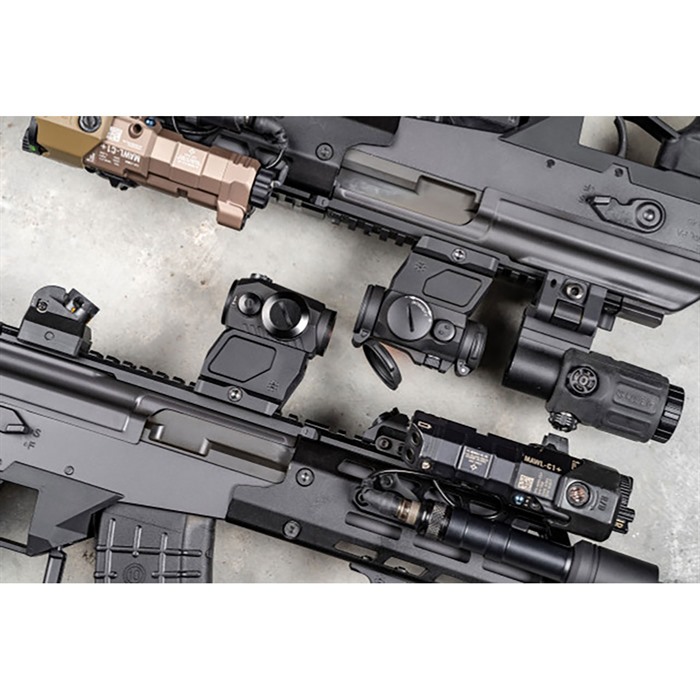 Varje montage är CNC-bearbetat från 6061-T651 och 7075-T651 aluminium och är MIL-A-8625 Typ III hårdanodiserat i svart. Anodiseringsfärger kan variera något mellan delar och batcher, vilket är helt normalt. Monteringen inkluderar alla nödvändiga skruvar och verktyg för att fästa optiken på montaget.