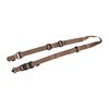 The Magpul MS4 QDM Sling is quickly reconfigurable between a one- and two-point operation, and enhanced by the factory-installed Magpul QDM quick-disconnect swivels! The Magpul QDM has a low-profile design and can be operated single-handily. The swivels are made with a corrosion resistant Melonite finish, and the included sling is 1-1/4” Proprietary weave wide nylon webbing that won’t rollover. This sling provides system strength, speed, and security with the use of Magpul QDM hardware, but maintains compatibility with the standard QD sling cup interface. The Magpul MS4 QDM Sling is made in the U.S.A. and is fully Berry Amendment compliant Secure and rapid length adjustment with MS1® Slider Freely rotating bale keeps from tails, loops, or other potential snag hazards Colored webbing has Near Infrared (NIR) treatment to reduce IR signature Available in black or coyote Based on the streamlined two-point MS1® Sling adjustment system, the Magpul MS4 QDM Sling retains the low-profile quick-adjust slider which minimizes bulk while allowing for effortless adjustment. The webbing length is optimized for a secure, yet comfortable fit with all body types and body armor setups.