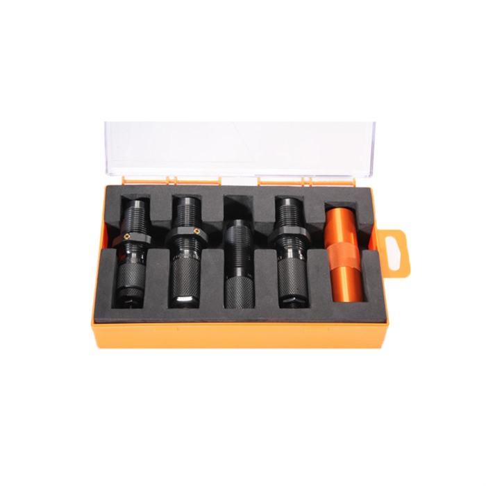 • Inkluderar en Small Base Sizing Die för att minska MSR-patroner till en något mindre än standardstorlek, vilket främjar smidig och problemfri matning från magasinet till kammaren.