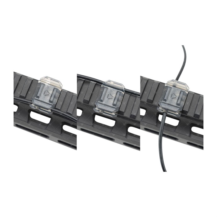Denna rail cover skyddar inte bara din Picatinny rail från skador, utan skyddar också din hand eller tumme från vassa kanter. Istället för att gömma kablar på en oorganiserad plats och använda kabelband eller tejp, erbjuder denna kostnadseffektiva lösning ett sätt att styra och/eller hålla lösa kablar (upp till 3.5mm / 0.14” i diameter) inuti kåpan.