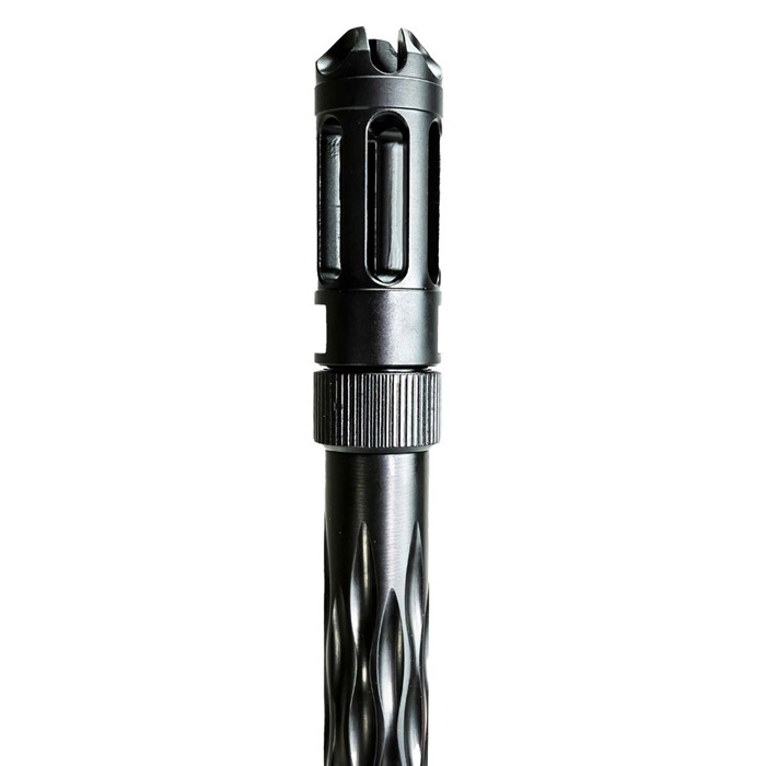 Faxon's invented "MuzzLok" feature on this device allows for easy timing and installation of your device without the need for a crush washer or shims. By using the extension nut to adjust the length of the device, you can adjust the rotational timing. It is recommended that you tighten the device to the recommended torque specification of 20-25 foot pounds. By not having to overcome the resistance of the crush washer, this allows devices to be removed and reinstalled in the field if desired. FEATURES No crush washer needed. Attach and remove in the field. Time your muzzle device quickly and easily. SPECS Caliber: 5.56 .23 lbs 2.75" tall .875" in diameter Note: Cannot be shipped to CA
