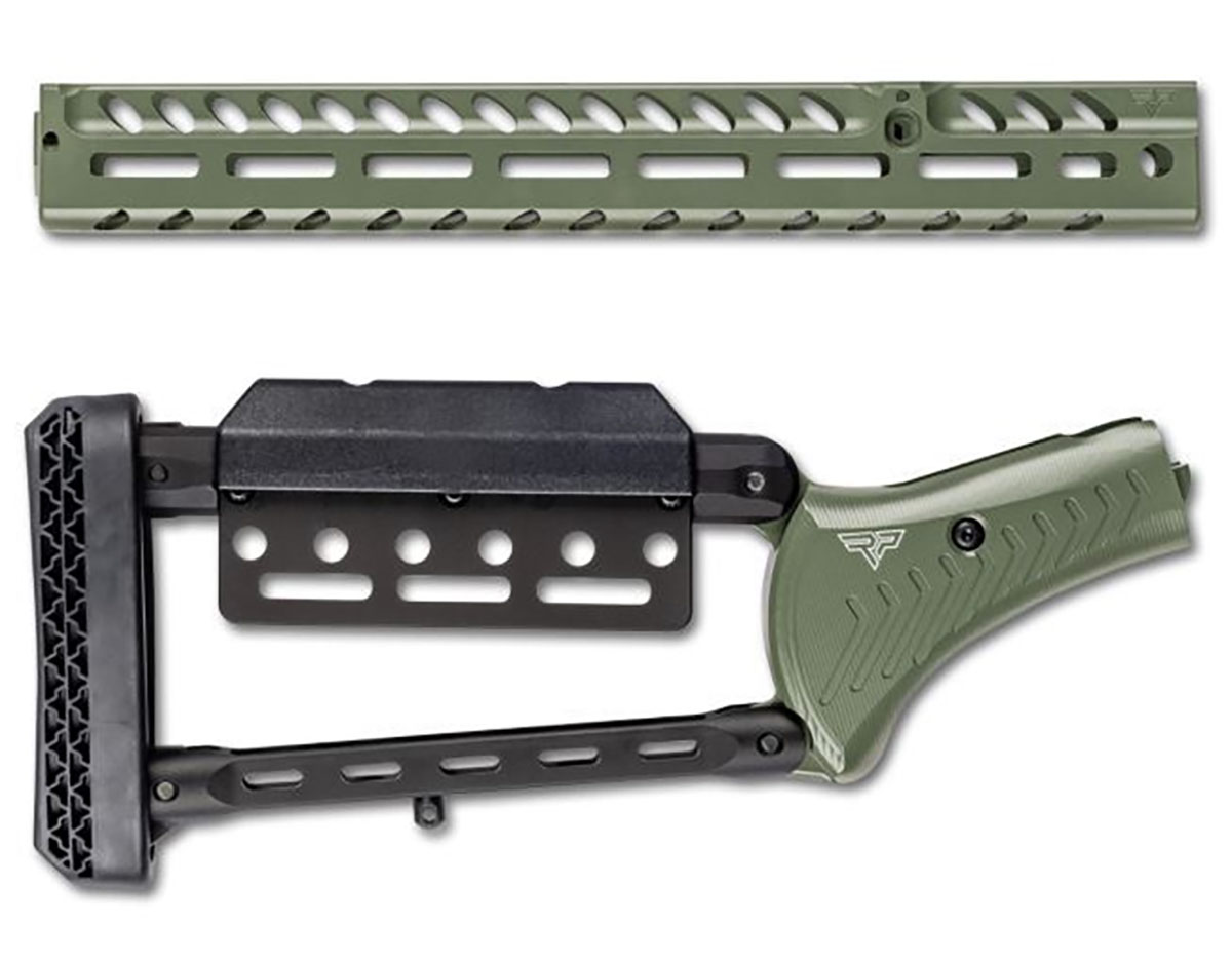 850078134424 Ranger Point Precision M-LOK Handguard and Adjustable Stock for Western Field 740, Glenfield 30A, Marlin 308 MXLR, 338MXLR and Dark Series Models Fits: Marlin 336BL, 336D, 1895 .45-70, 444, 450M, 1894 .44 Mag, 1894 .357 Mag, 1894 .45 Colt Does Not Fit: Barrel band models, 336C Compact, 336Y Youth Handguard Length: 13.25" (33.6 cm) x 1.5" width x 1.6" height Weight: 5.8 oz (164 g handguard), 22 oz (624 g stock) Material: Machined from solid 6061 billet aluminum for superior strength and reduced weight Features: 24 M-LOK slots, 4 flush cup holes for sling swivels Flat bottom for stability; ergonomic grip with deep finger grooves 6-position buttstock with adjustable cheek riser for enhanced optic height Durable construction with Dead Blow recoil pad for improved shooting comfort Easy DIY installation with robust mounting screws
