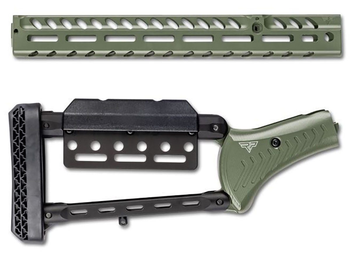 850078134417 Ranger Point M-LOK Handguard for Marlin 336 and Compatible Models Fits: Glenfield, Marlin 336 30-30, 30-30AW, 35 Rem, 444, 41 Mag, 1894C, and CS 357 Does not fit: Marlin Dark 30-30, octagon barrels, Marlin P/CL, 444 barrel band models (requires new dovetail cut). Specifications Material: Precision-machined from solid billet aluminum for maximum rigidity and reduced weight. Length: 13.25" (336.5 mm) – Width: 1.5" (38 mm) – Height: 1.6" (40.6 mm) – Weight: 5.8 oz (165 g). 24 M-LOK slots, 4 flush cup holes for sling swivels. Secure bedding with 4 set screws to prevent lateral shift. Ergonomic design: Slim profile, deep finger grooves, flat bottom for rest stability, enhanced grip texture. Integrated loading port cutout for easy tube reloads. DIY-friendly, easy installation. Compatible with shortened barrels and suppressors. Deburred and polished for smooth, comfortable handling. Includes: 1x Ranger Point M-LOK Handguard (13.25") with barrel band and screws. Ranger Point Adjustable Butt Stock Material: 6061 billet aluminum, KG Gun Kote (Moss). Weight: 22 oz (624 g). Adjustable cheek riser and AR-style 6-position butt plate with DEAD BLOW recoil pad. M-LOK panel with two sling swivel holes (left/right installation). Ideal for tall optic setups with customizable comb height.Restorder. Skickas när det finns i lager. Leveranstid ca 3-4 månader från europeiskt lager.