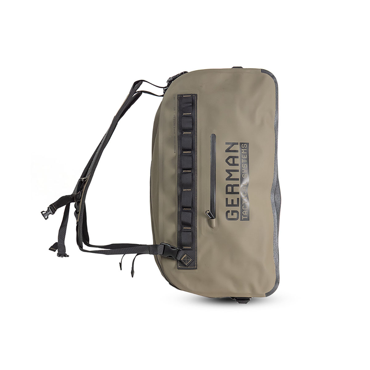 0726529840704 The Mission Carrier from German Tactical Systems is built for those who carry more and demand the same rugged reliability found across our waterproof gear line. Designed for field operators, outdoor professionals, and anyone on the move, this Hybrid Duffle Bag offers maximum versatility, comfort, and protection from the elements. Hybrid Carry System: The Mission Carrier can be carried as a traditional duffle or worn like a backpack. The detachable straps can be crossed over or secured together with integrated Velcro loops, allowing you to customize your carry setup based on the mission. Waterproof Protection: Built from heavy-duty, waterproof materials that shield your gear from rain, mud, and harsh environments. Perfect for field use, travel, or everyday tactical applications. Spacious Main Compartment: A large waterproof main compartment with internal securing straps keeps your gear organized and stable, even in motion. Internal Storage: Includes two large inner side pouches for structured organization of smaller equipment, tools, or clothing. External Side Pouches: Additional outer compartments provide quick access to frequently used items without opening the main storage area. Full-Length Utility Loops: Both sides feature continuous loops designed for attaching carabiners, accessories, or securing the Mission Carrier to vehicles, boats, or racks during transport. Adaptable and Rugged: Whether you’re on deployment, at the range, or heading out for a weekend operation, the Mission Carrier stands up to heavy use while keeping your gear dry, accessible, and secure. Volumen = 51 L Length = 59cm Width = 27cm Height = 32cmLeveranstid ca. 4-10 dagar.