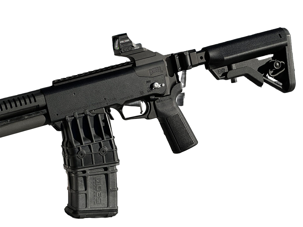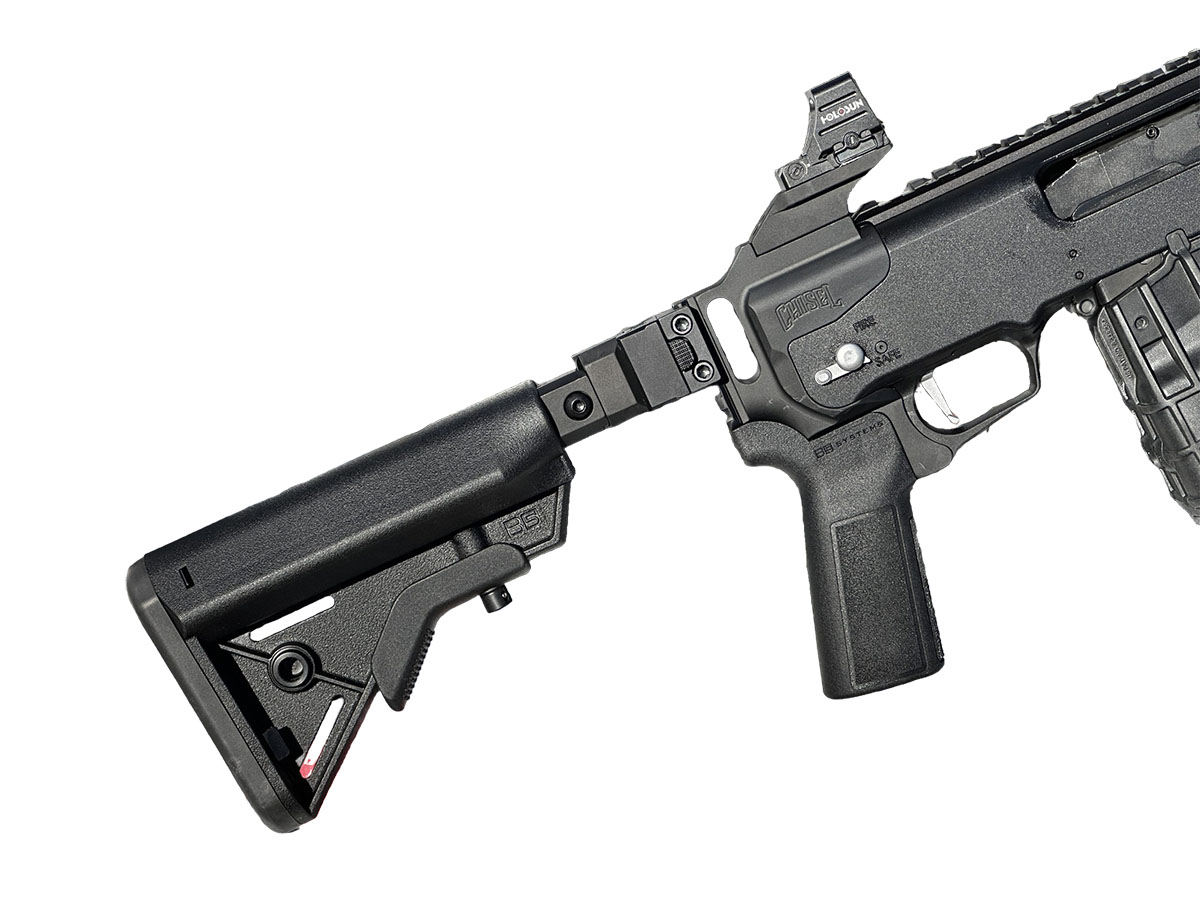 The Chisel Machining Mossberg 590R Folder is a premium, CNC-machined folding stock designed specifically for the Mossberg 590R platform. Built for durability, modularity, and compact handling, this stock is ideal for users who demand both rugged performance and refined engineering. Machined from solid 6061 billet aluminum, the 590R Folder offers exceptional strength while maintaining a balanced weight profile. The side-folding mechanism allows the stock to fold neatly, significantly reducing overall length for easier transport, storage, and maneuverability in confined spaces. The stock features an adjustable length of pull, enabling shooters to fine-tune the fit for optimal comfort and control. Its design supports compatibility with AR-style grips and other tactical components, making it a versatile upgrade for professional, tactical, or enthusiast use. Finished with precision CNC detailing and a durable surface treatment, the Chisel Machining 590R Folder delivers both a high-end appearance and dependable performance under demanding conditions. Key Features CNC-machined from 6061 billet aluminum Side-folding stock for compact transport and storage Adjustable length of pull for a customized fit Designed specifically for the Mossberg 590R Compatible with AR-style grips and tactical setups Precision machining with a durable, professional finishRestorder. Skickas när det finns i lager. Leveranstid ca 3-4 månader från europeiskt lager.