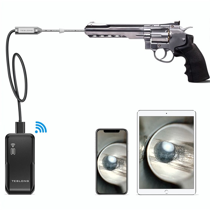 NTG150PW WI-FI RIGID PISTOL BORESCOPE 10" för iOS och Android är ett utmärkt verktyg för att utvärdera renlighet, hals erosion, verktygsspår, rifling slitage, kammer skador och fouling.